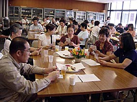| 文化祭では好例の「その枝会のラーメンコーナー」をお手伝いさせて頂く様になって今年で2年目となりました。 「その枝会」はキリスト教青年会の現役メンバーとOBによって構成されているのですが、ひょんなことから(その枝会のメンバーでも、現役生時代青年会にいたこともない私が)お手伝いさせて頂く様になったのでした。 前回と大きく違うのは今年の文化祭は9月に行われるという事、キリスト教青年会の現役生徒と一緒にラーメンを作るという事、昨年のカレー味はやめて、醤油味一本にするという事でしょうか。 あいにく残暑の季節としてはさほど暑くはなかったのですが、私の担当はラーメンのスープ係りという事もあり、とても暑かった! 皆さん手馴れたもので、若い学生の力を借りながら、手馴れた手つきでそれぞれの持ち場を休む暇なくこなしていくとあっという間に時間が過ぎていきました。 とても疲れたし、終わった時は、「もう来年は手伝いは断ろう!」と思うのですが、後になって思い出してみると、「やってよかったな」「結構楽しかったね」と思えるから不思議なものです。 〜私たちのラーメンを食べて頂いた皆様〜 味はいかがでしたか?おいしく食べていただけましたでしょうか? また来年も是非立ち寄ってみてくださいね。そしてより一層磨きのかかった熟練(熟年?)の手さばきを見てやってください。 〜その枝会の方々とキリスト教青年会の現役生の子達〜 充実した素晴らしい一日を皆様と過ごせた事を感謝しています。 また来年もお呼びがあればお手伝いさせていただきます。 (高44期 川端善一) |